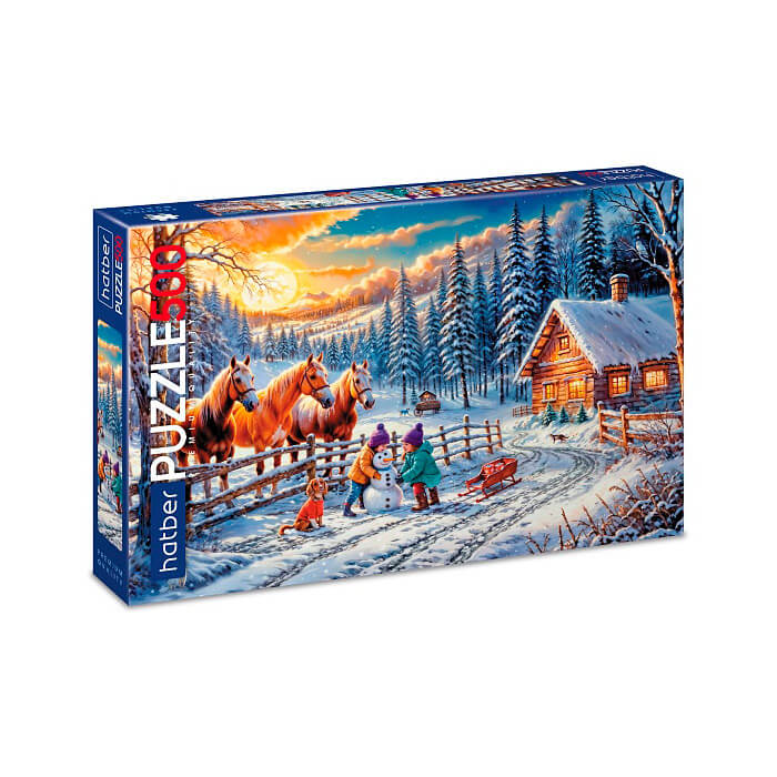 `Premium` ПАЗЛЫ для детей 500 элементов А2ф 480х330мм -Зимние забавы-