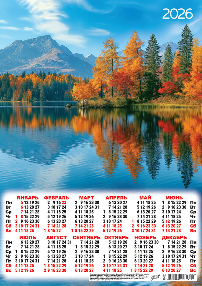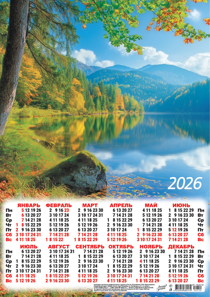 Календарь - плакат А3 2026 Природа. Осень на озере
