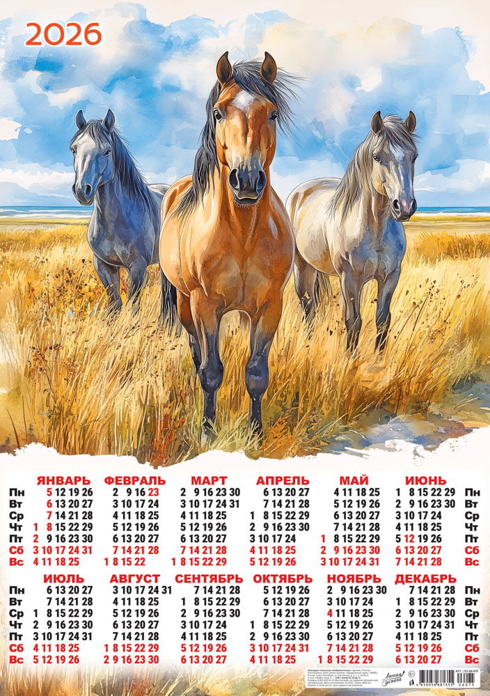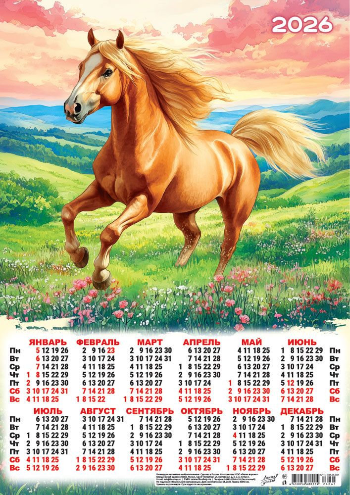 Календарь - плакат А2 2026 Символ года. Лошадка