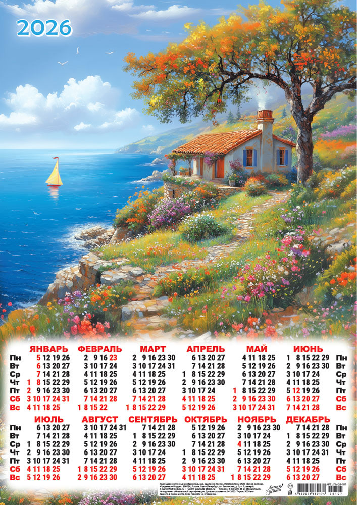 Календарь - плакат А3 2026 Волшебный мир. Дом на холме