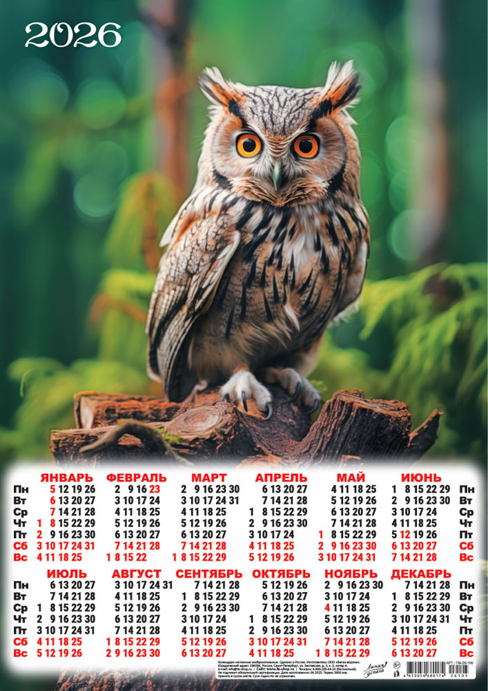 Календарь - плакат А3 2026 Таинственный лес. Совушка