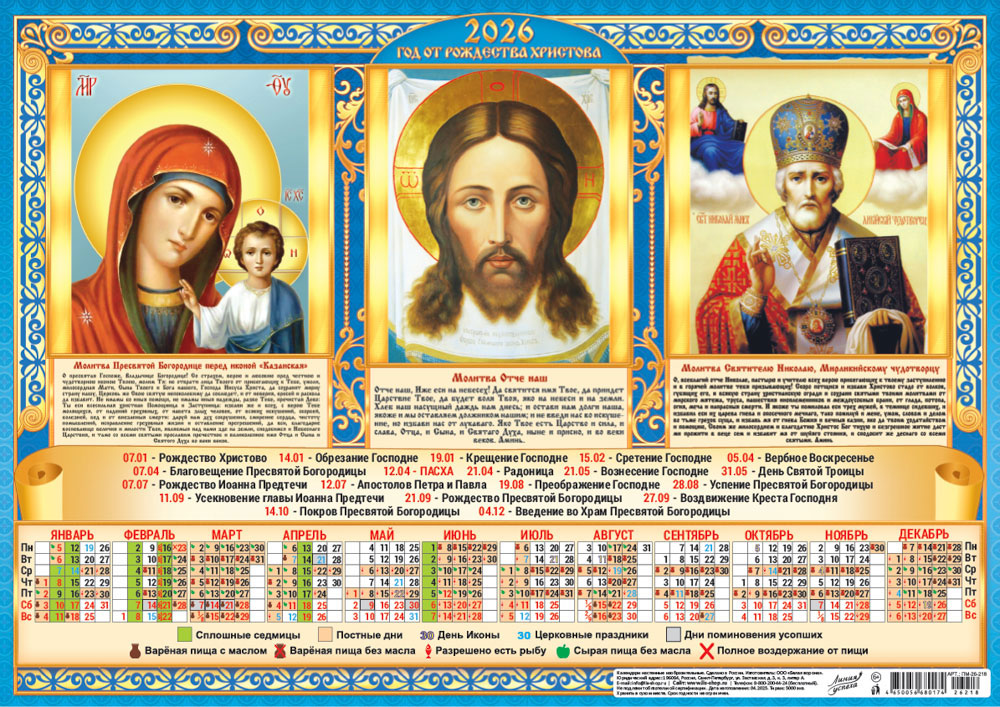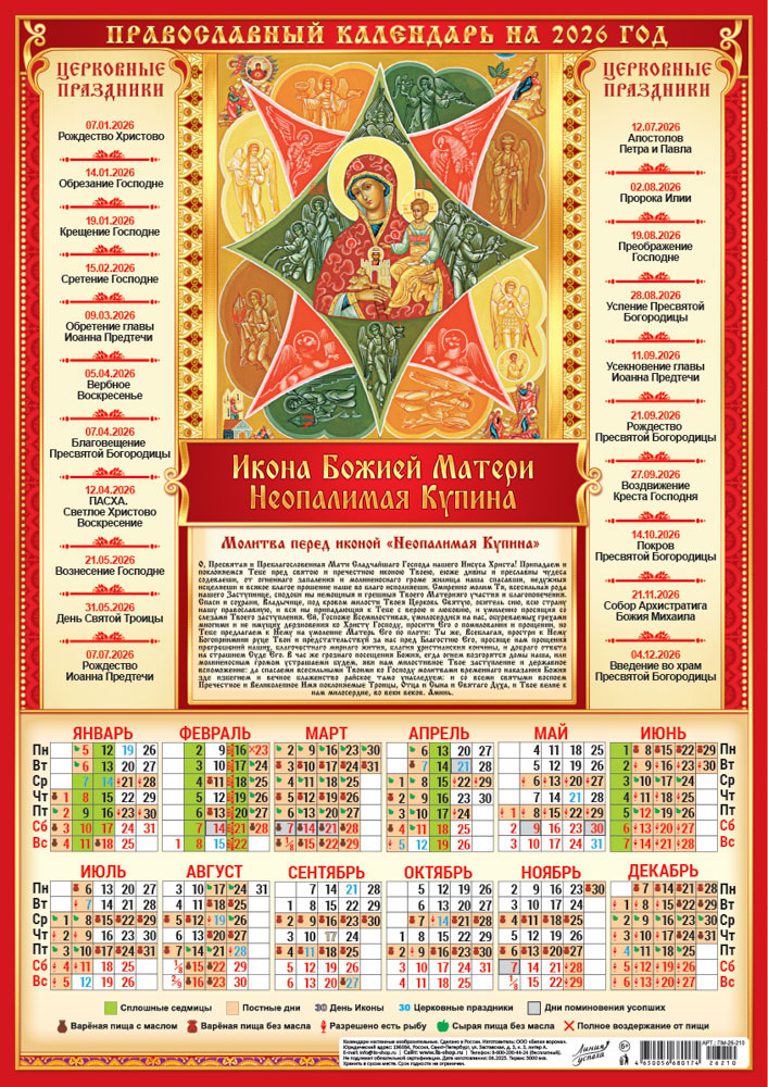 Календарь - плакат А3 2026 Икона. Неопалимая Купина