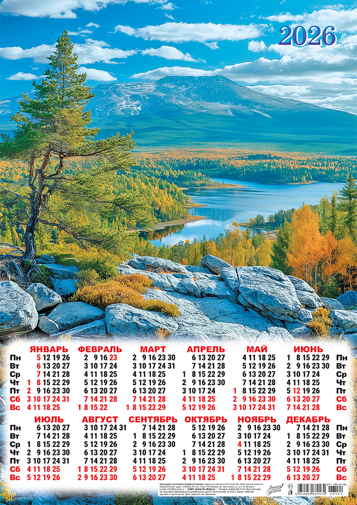 Календарь - плакат А3 2026 Природа. Скалистое плато
