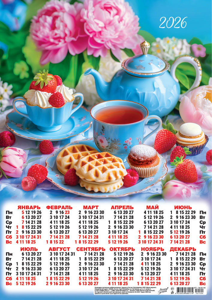 Календарь - плакат А3 2026 Чаепитие. Сладкий чай