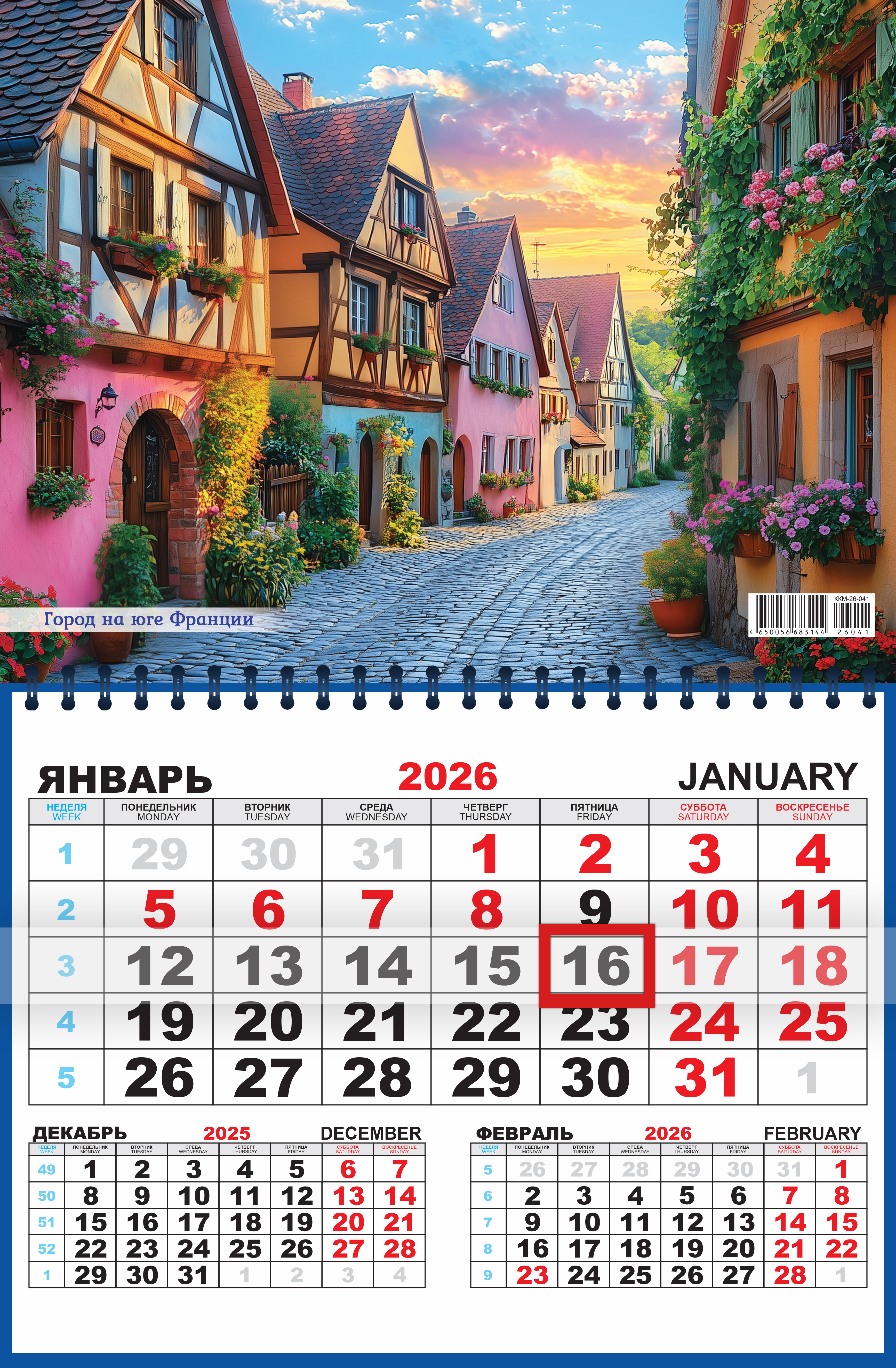 Календарь квартал. одноблочн. 2026 Прогулка по миру. Франция