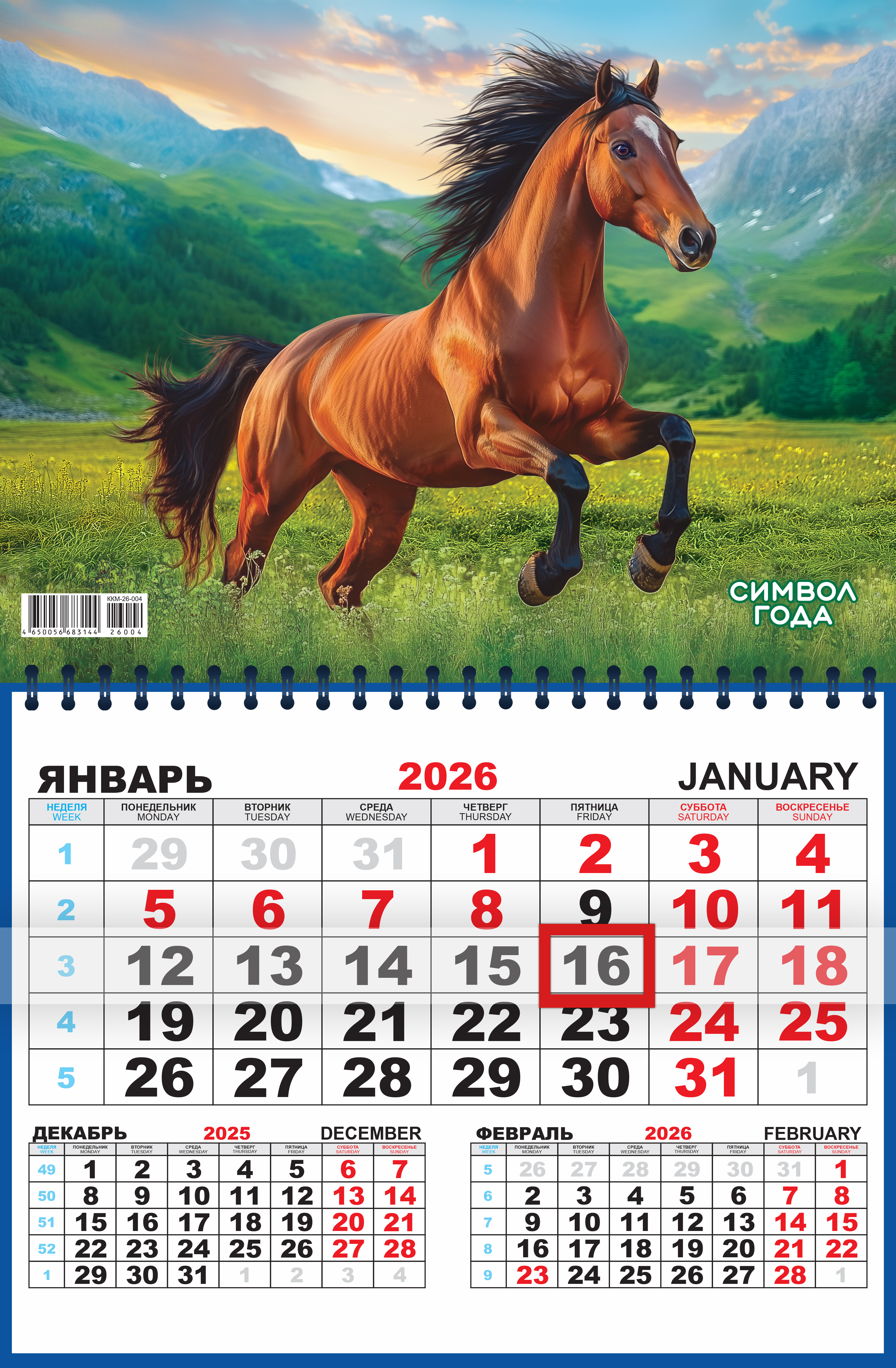 Календарь квартал. одноблочн. 2026 Символика РФ