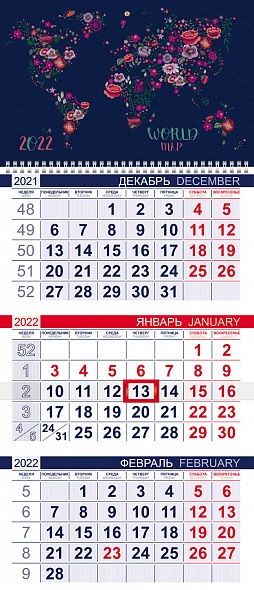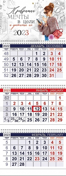 Календарь настен.3-х блоч. Календарь квартальный трехблочный пермиум
