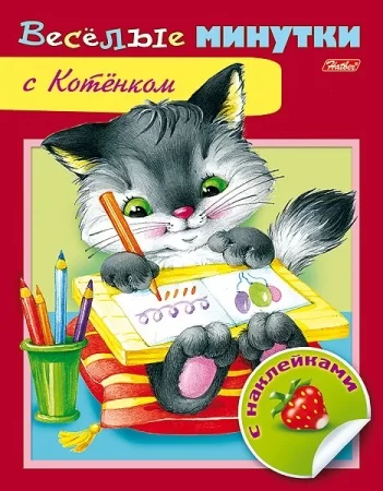 Книжка 8л А5ф цветной блок с НАКЛЕЙКАМИ на скобе Веселые минутки-С Котенком-
