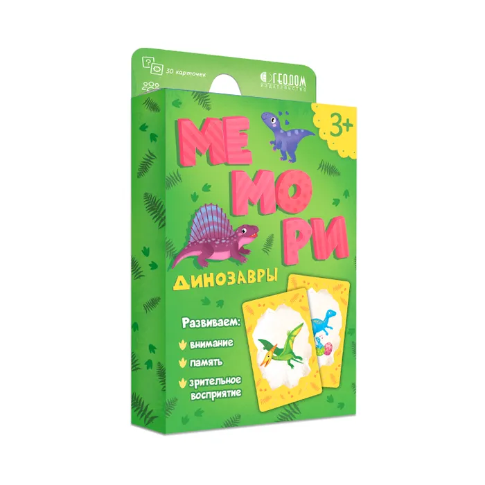Игра карточная. Мемори для малышей. Динозавры. 30 карточек