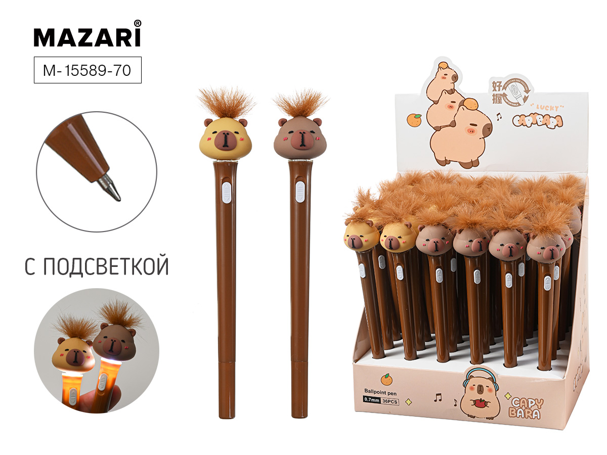 Ручка Mazari Capybara 0,7 масл. синяя с подсветкой