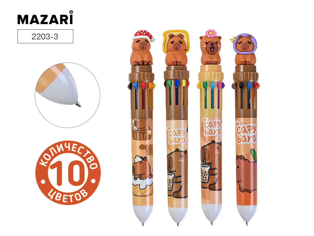 Ручка авт. Mazari Зубастик 10цв 0,7мм синяя