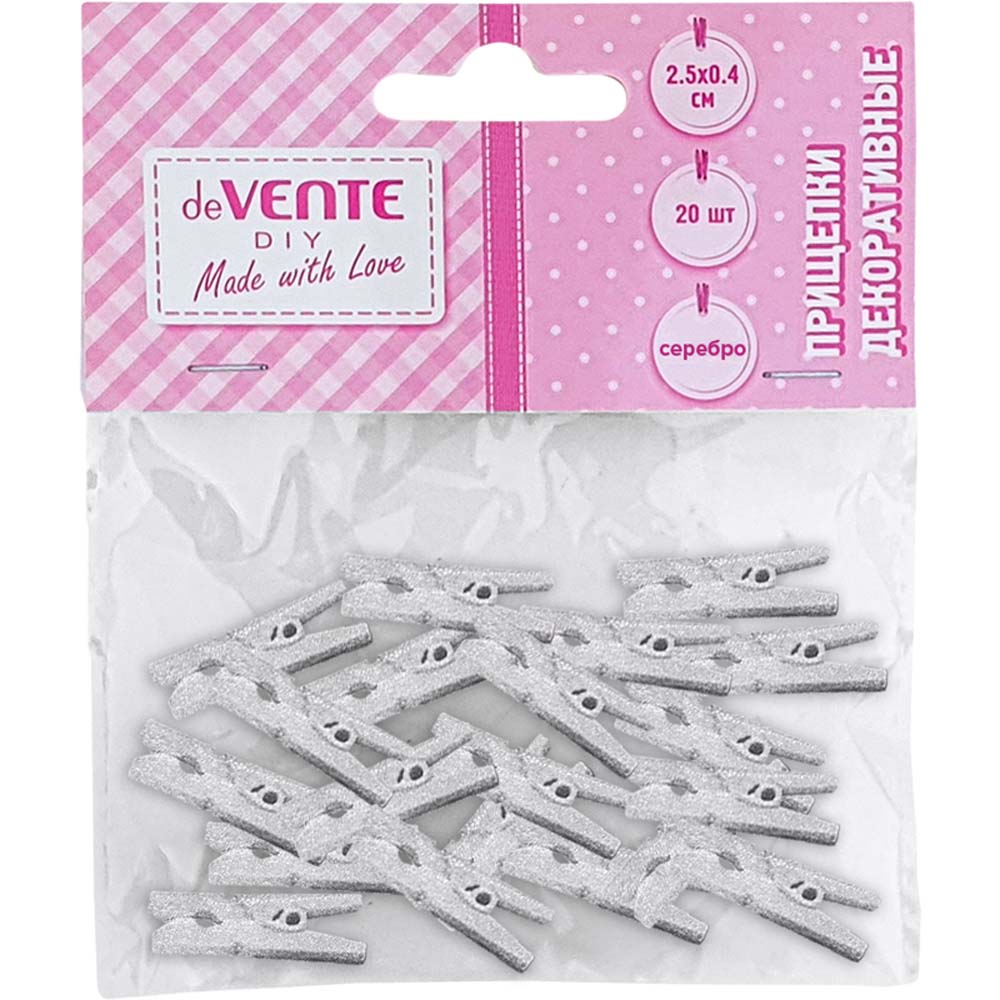 Прищепки декоративные дерев. deVENTE Silver серебрянные
