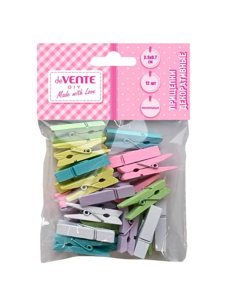 Прищепки декоративные deVENTE DIY Natural Wood дерев. пастельные