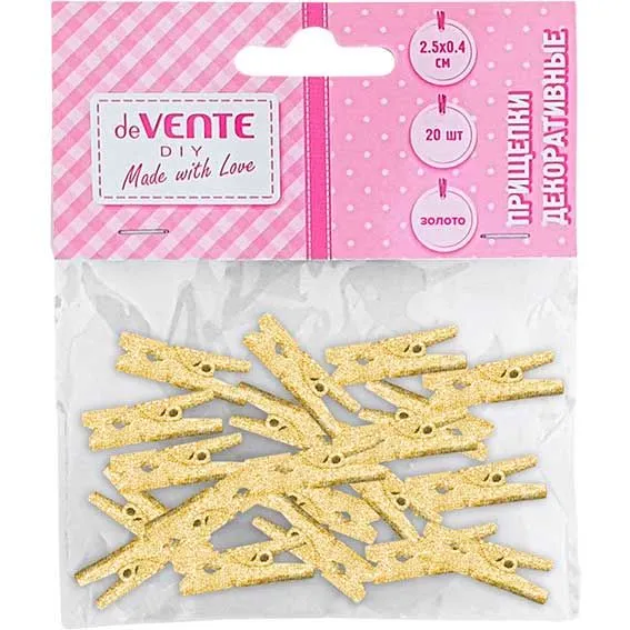 Прищепки декоративные deVENTE Golden дерев. золотистые
