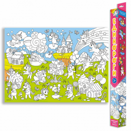 Плакат-раскраска для малышей. Единороги. 70х50 см. ГЕОДОМ (ISBN нет)