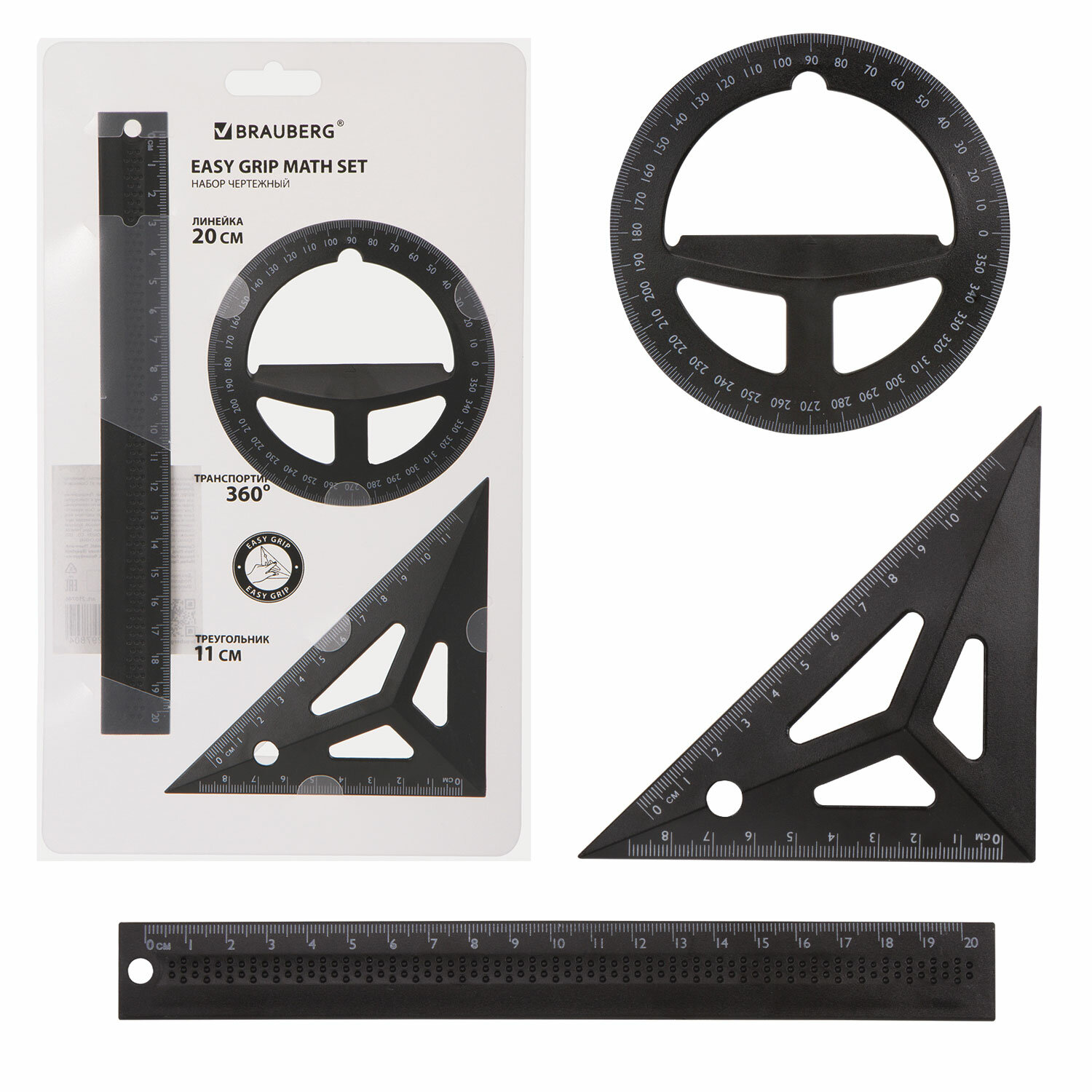Линейки набор Brauberg (линейка 20см, угольник, трасп.) черный